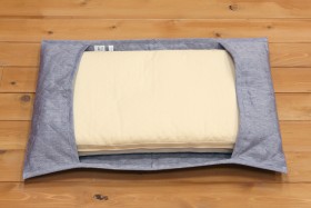 麻100%の中わたを包む側生地はヘンプを使用しています。