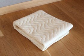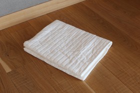 衛生綿をつかった綿パッドを敷くことで、ウールのお布団にダイレクトにおねしょなど、汚れが浸透することを軽減します。洗い替えがあれば、赤ちゃんのお布団を清潔に保つことができて便利です。(写真とキルトの模様はことなります。)